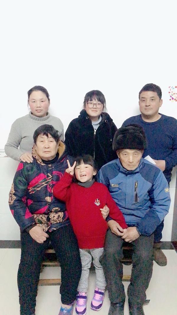 后排从右往左依次是王小安(外卖骑手)、大女儿王正楠、妻子范青莲。前排从右往左依次是王小安父亲、小女儿王正玉及王小安母亲。王小安供图