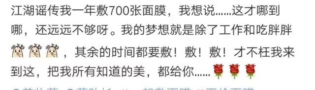 不得不说,冰冰真的是很讲究了,平时行程那么紧,敷面膜真的是从不耽误啊。从片场到机场在敷面膜,长时间的飞行还是在敷面膜,宅在家也是在敷面膜。果真如冰冰所说,除了吃吃吃,拍拍拍,剩余时间真的是在敷敷敷了。