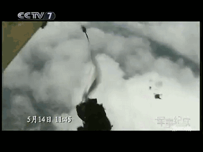 汶川地震,空降兵某部数名战士从高空跳出舱门。