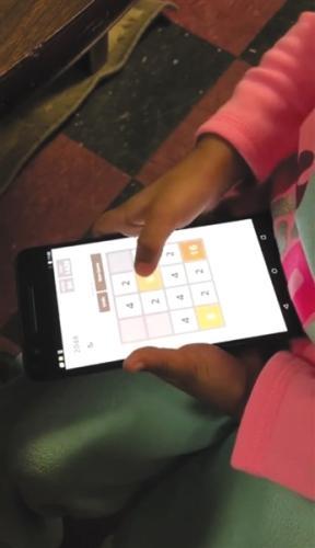 一名儿童正在安卓系统的智能手机上玩“2048”游戏,进行iCare软件的实验。受访者供图 图片来源:新京报