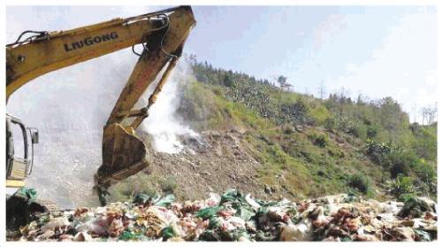 图为垃圾回填处理现场。