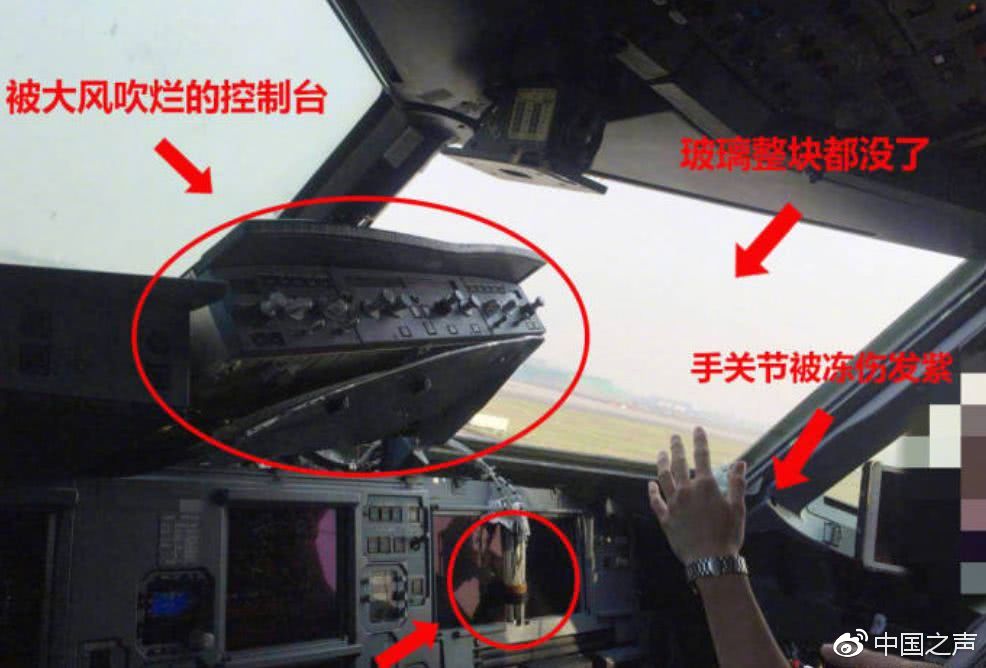 根据该航班机长刘传健接受媒体采访时的描述:当时在毫无征兆情况下,随着“轰”一声巨大声响,右座副驾驶身体已经飞出一半。