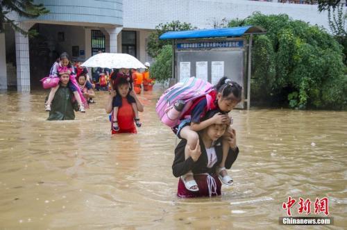 7月2日,四川仁寿县清水镇遭遇暴雨袭击,清水小学进水被淹,1093名师生被洪水困在校园内,情况万分紧急。 梁卫东 摄