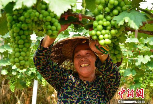葡萄熟了,村民喜获丰收。 彭本胜 摄