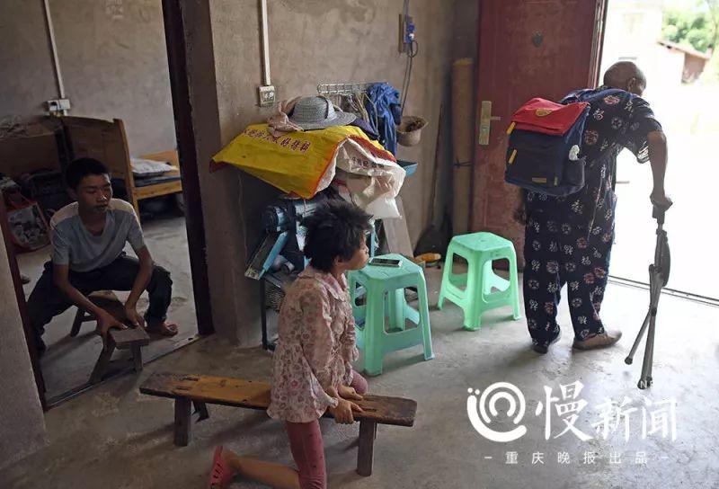 38岁的母亲三级肢残,无法站立,无法行走,骑在一根约30厘米高的长凳上,踢踢踏踏地挪动,说话含混不清;