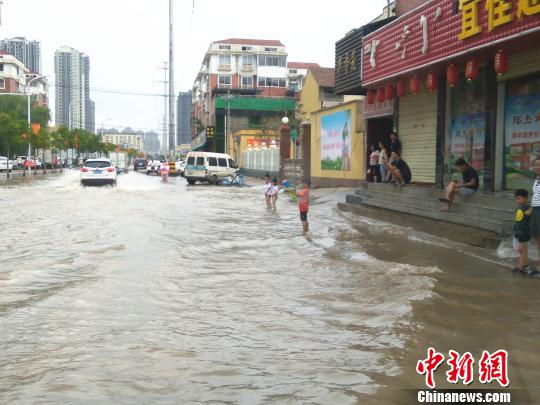 台风“温比亚”过境,造成河南商丘市内积水严重。 黄伟 摄