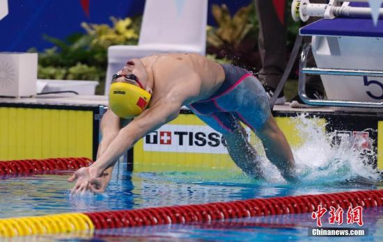 8月20日,2018雅加达亚运会游泳项目男子50米仰泳,徐嘉余以24秒75摘得金牌。中新社记者 杜洋 摄