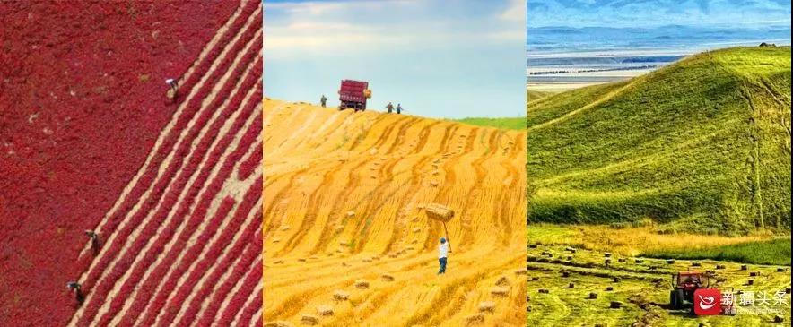 9月的新疆,广袤的田野变成了梵高的画布,金黄、深绿、红褐,浓重而热烈,经历数月的辛劳,农民们迎来了最甜蜜的收获季,从南到北,吐鲁番的葡萄晶亮欲滴、库尔勒的香梨成色诱人、若羌的红枣光滑饱满、和田的石榴鼓起了肚皮、伊犁的秋苹果涨红了脸蛋……从东到西,红艳艳的辣椒、番茄浸染大地,金灿灿的巴旦木、核桃、花生,油亮亮的葵花籽、打瓜子密密实实,它们共同为国内外的游客送上了丰富的新疆礼物。