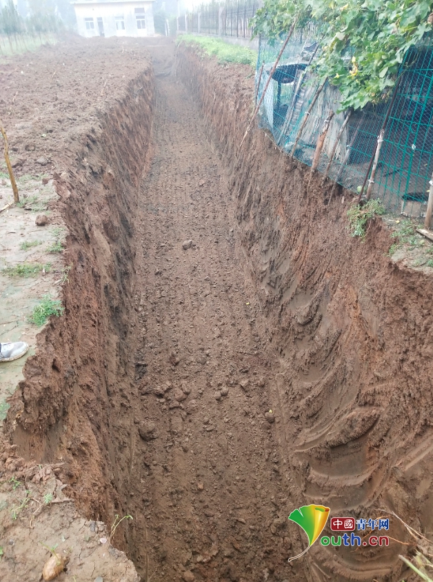 挖掘机挖出的巨大填埋沟。记者宿希强 摄