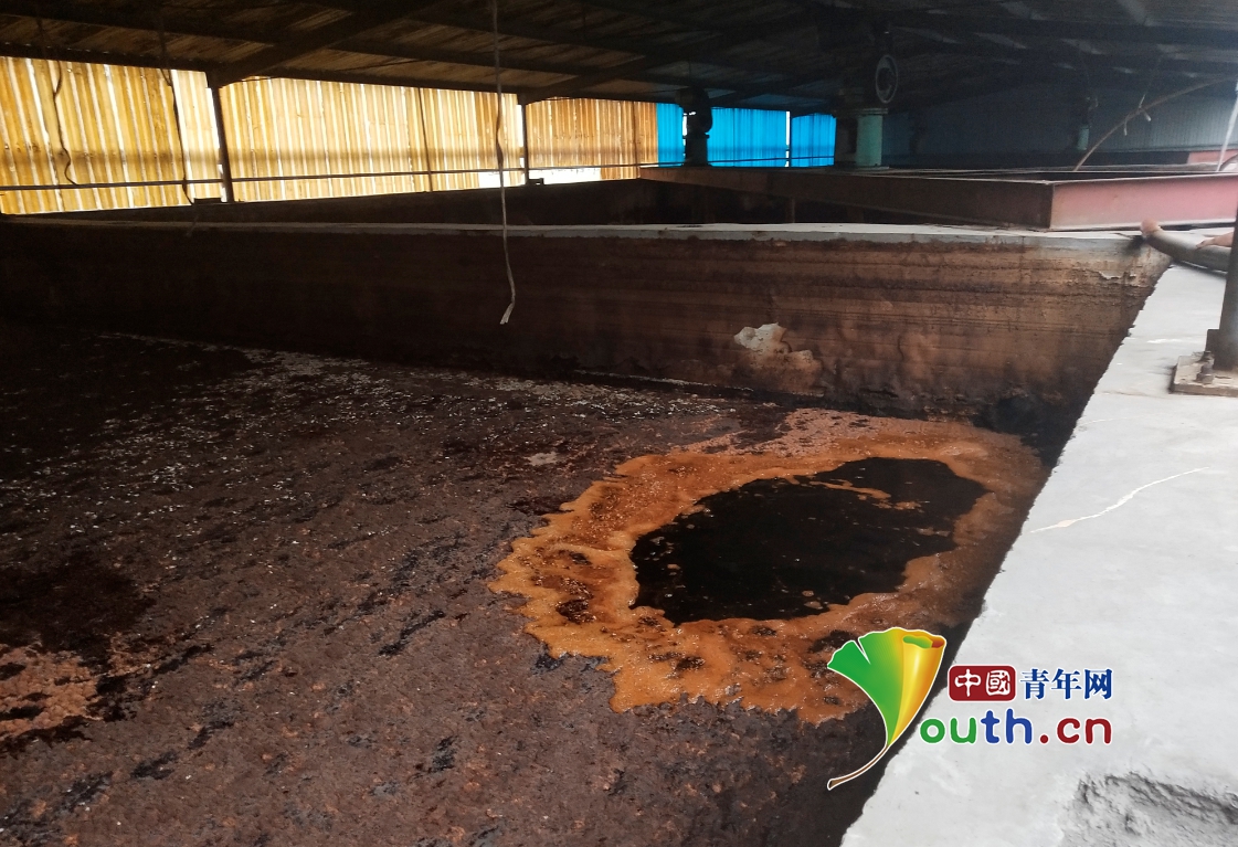 鹤伴山厂内脏臭的发酵池,黑褐色的液体形同酱油。记者宿希强 摄