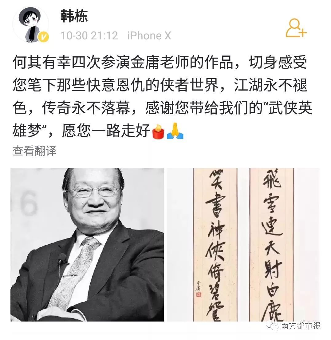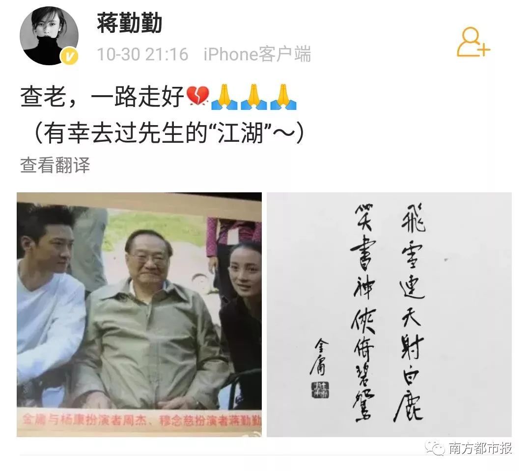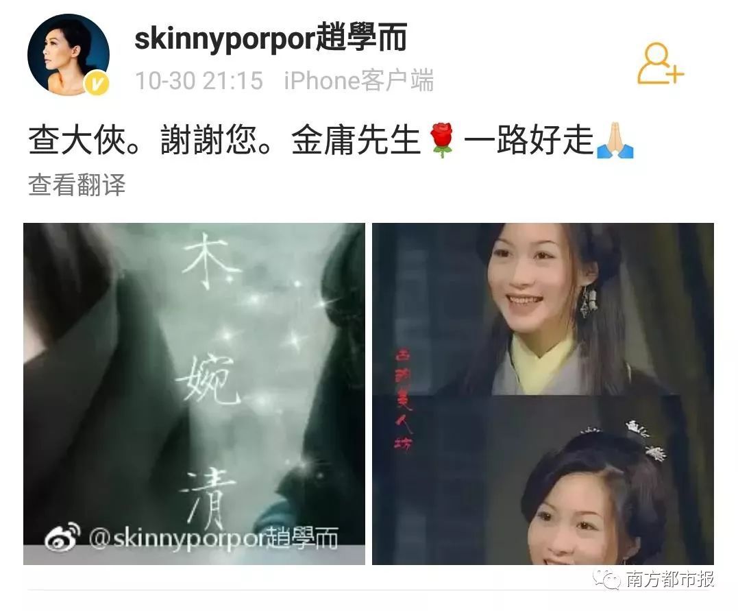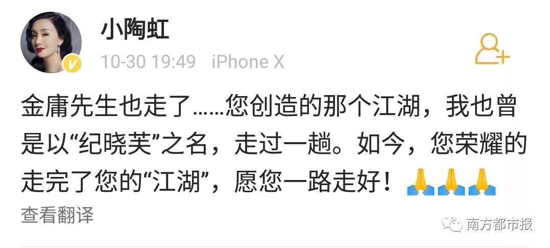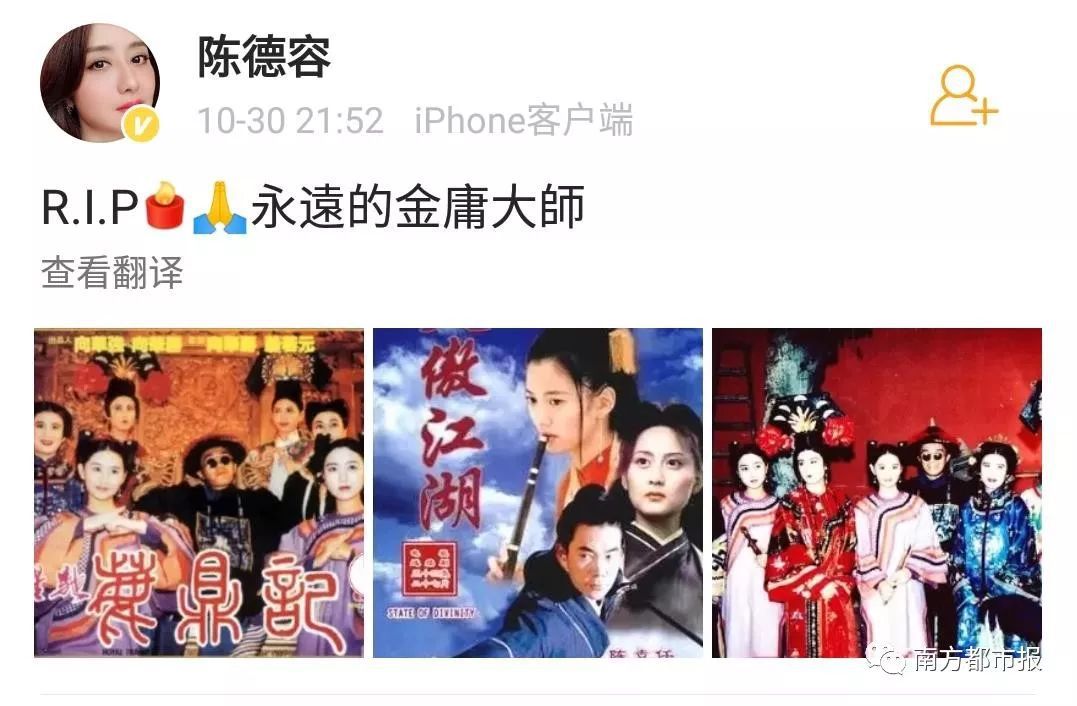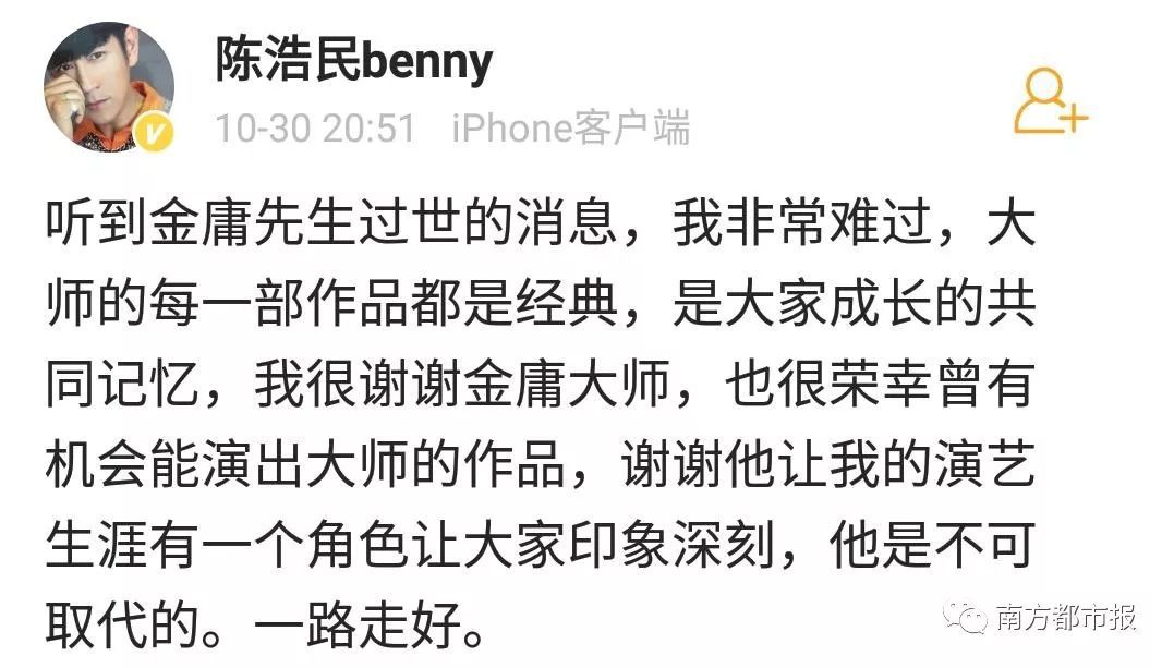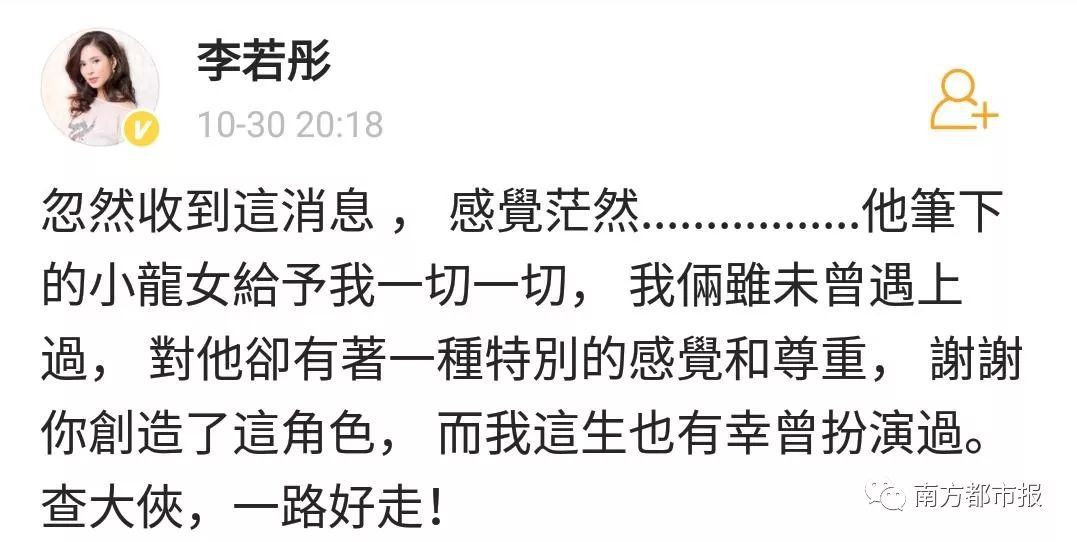 其中,陈小春(饰演过韦小宝)在微博写道“小宝就此别过,查大侠走好”……