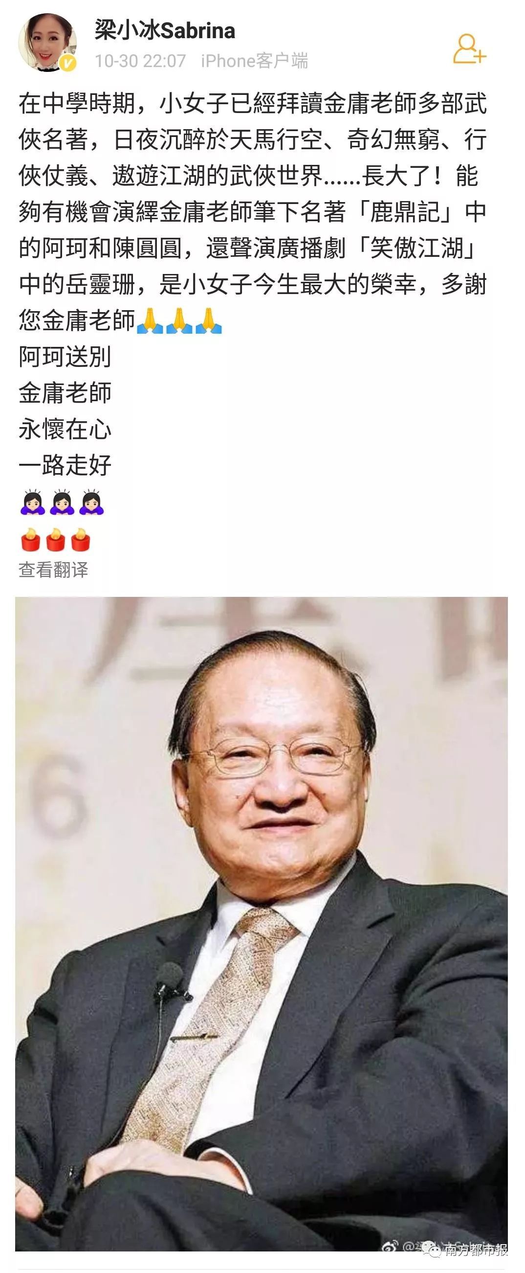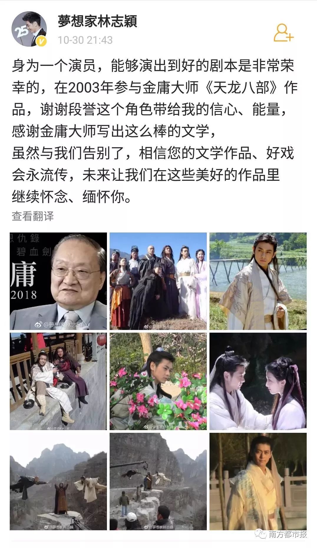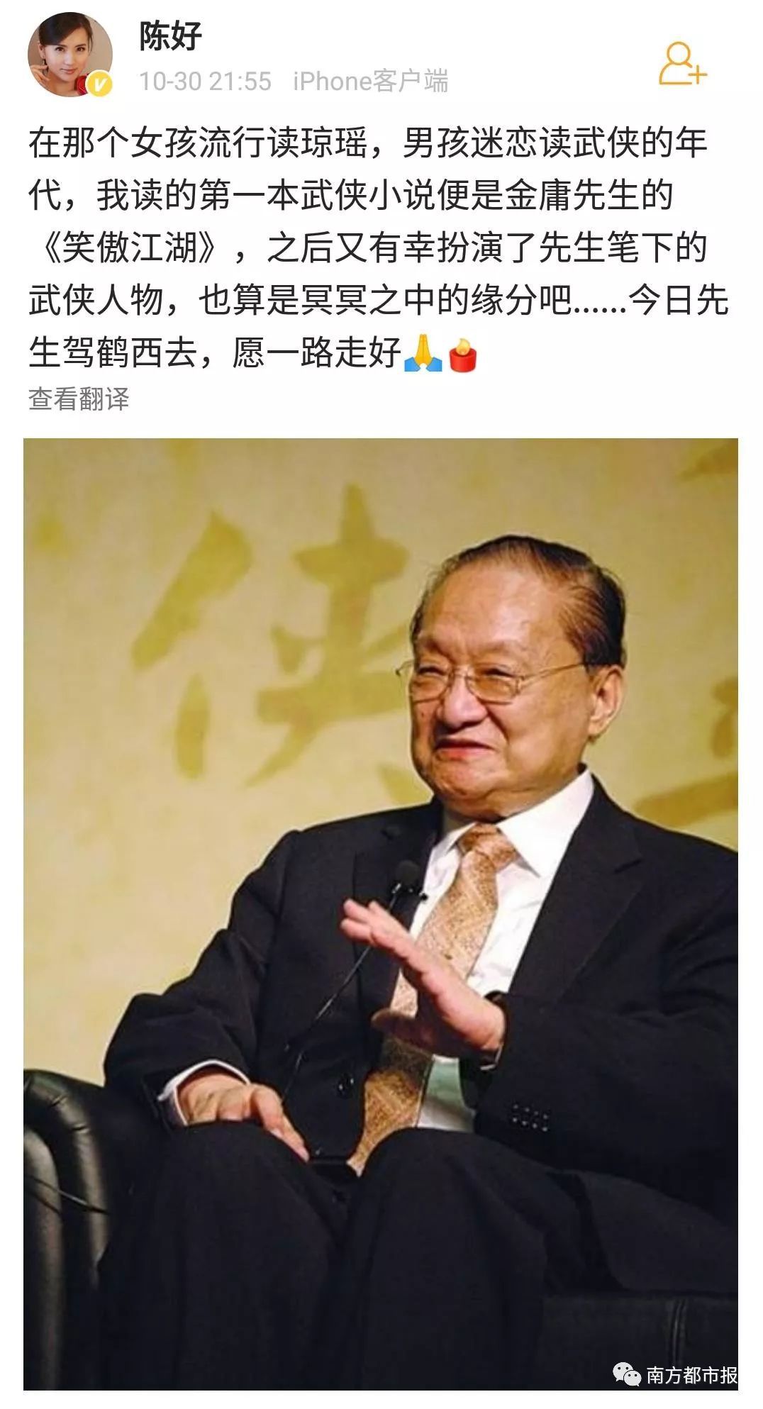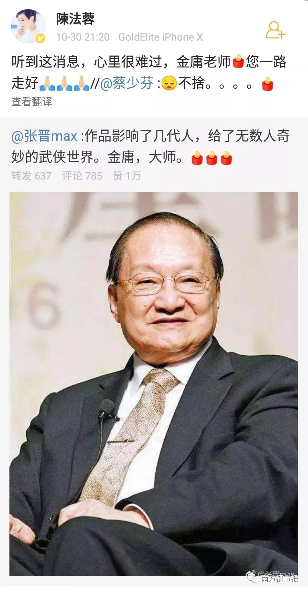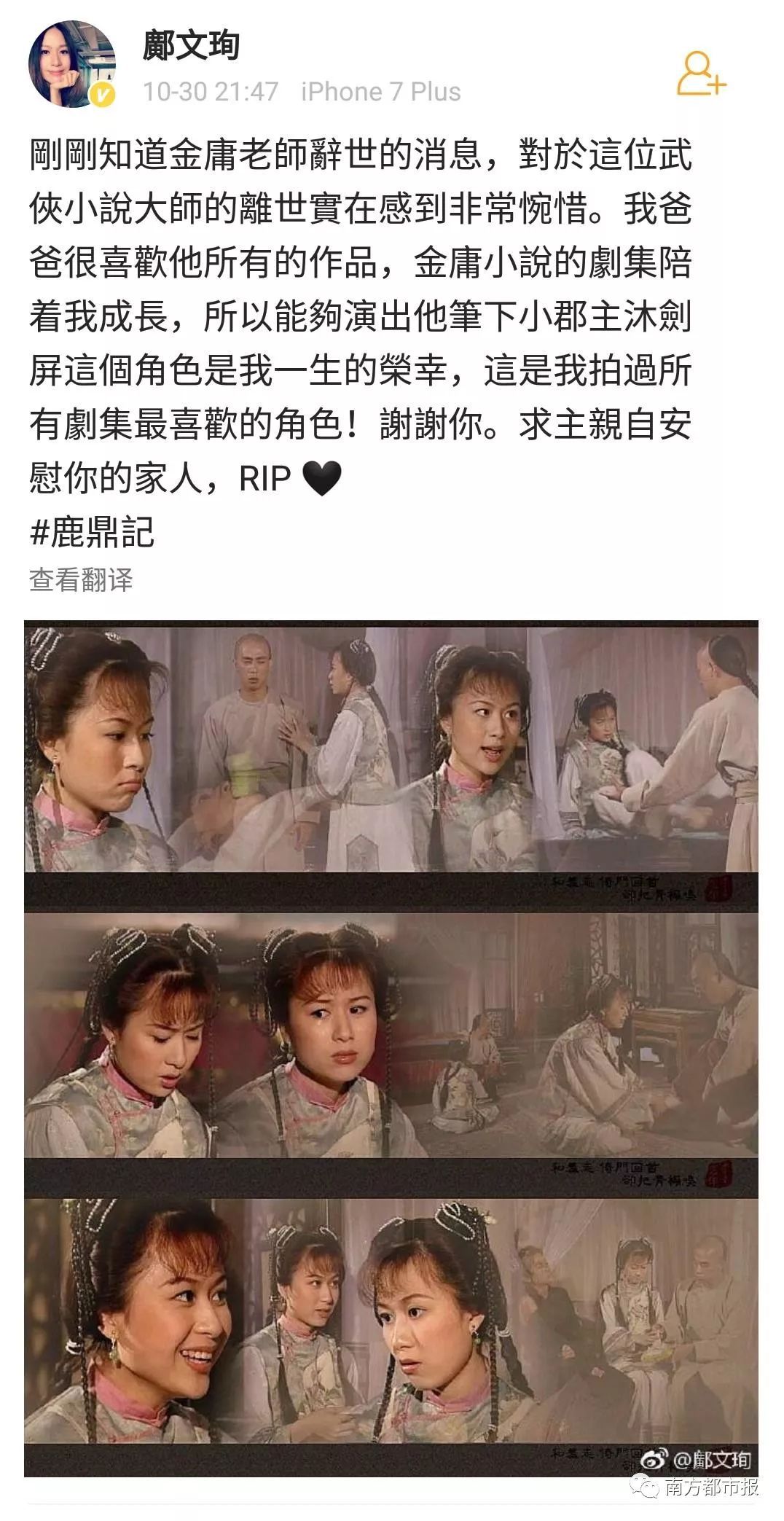 其中,陈小春(饰演过韦小宝)在微博写道“小宝就此别过,查大侠走好”……