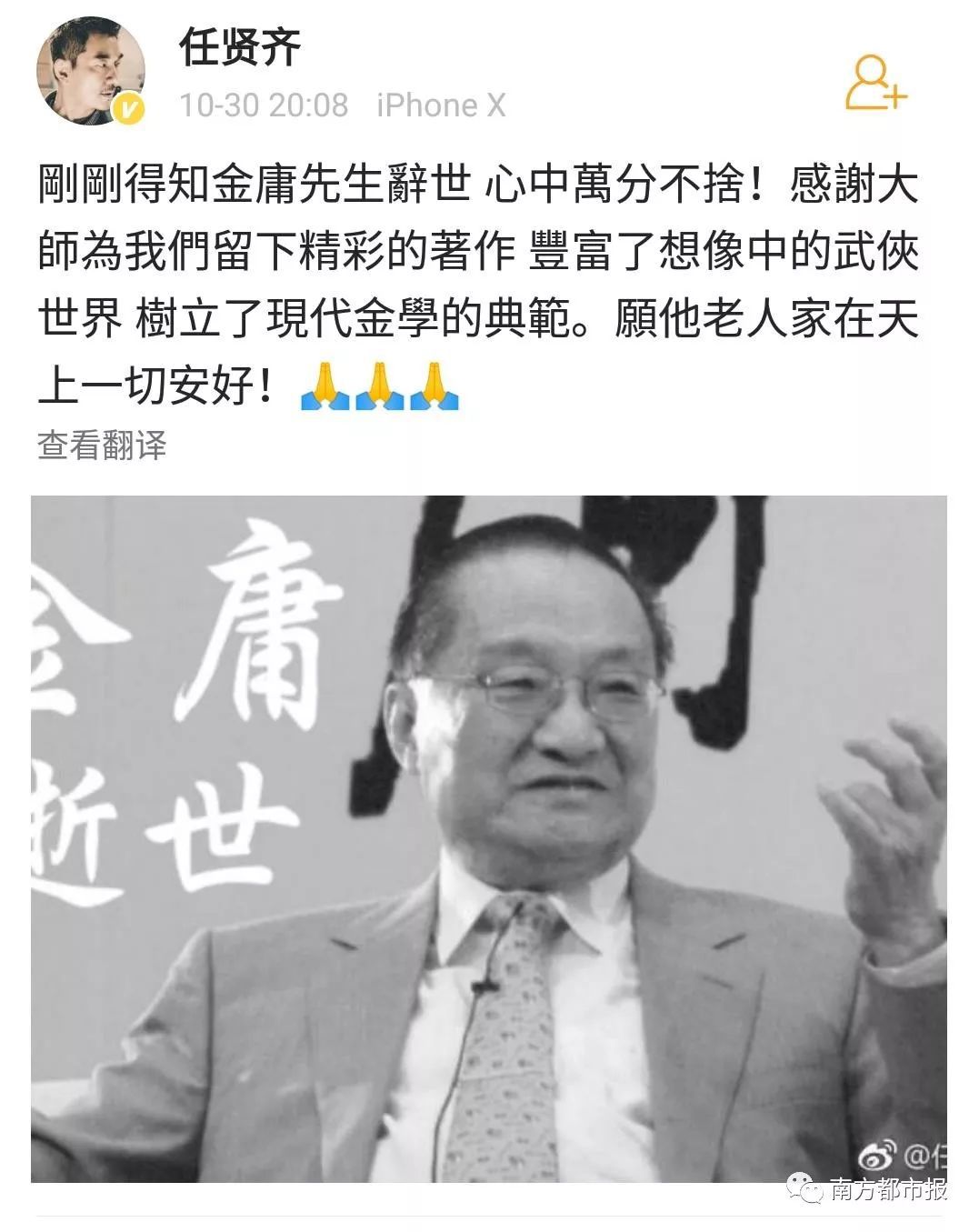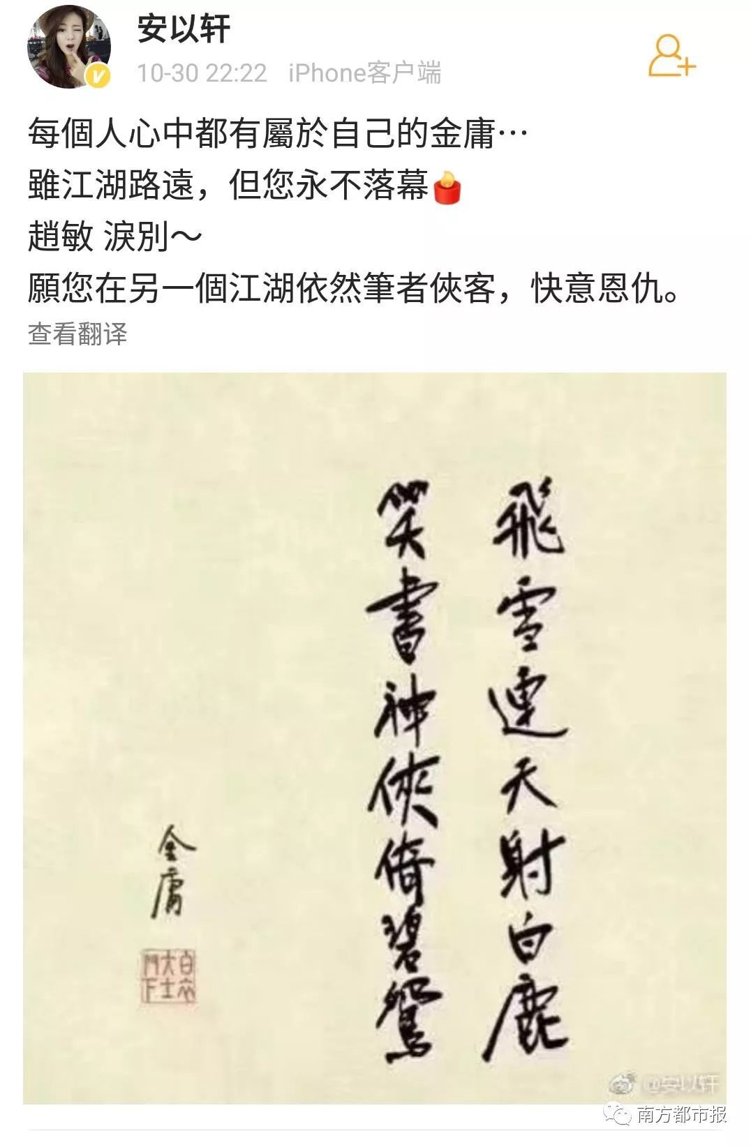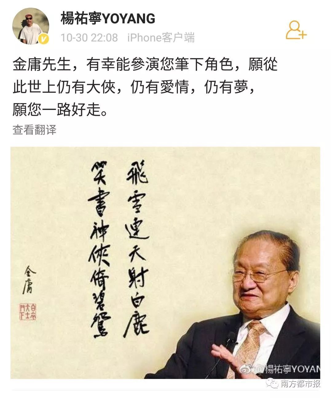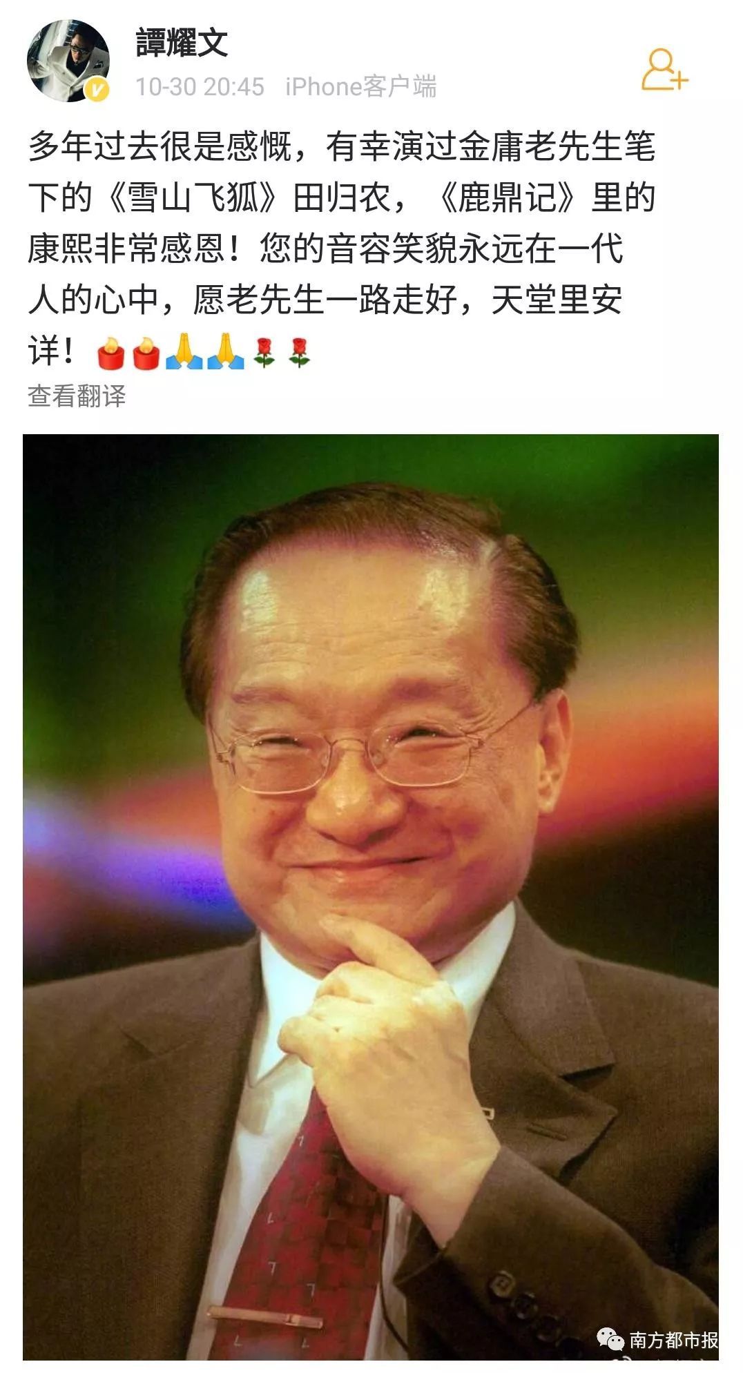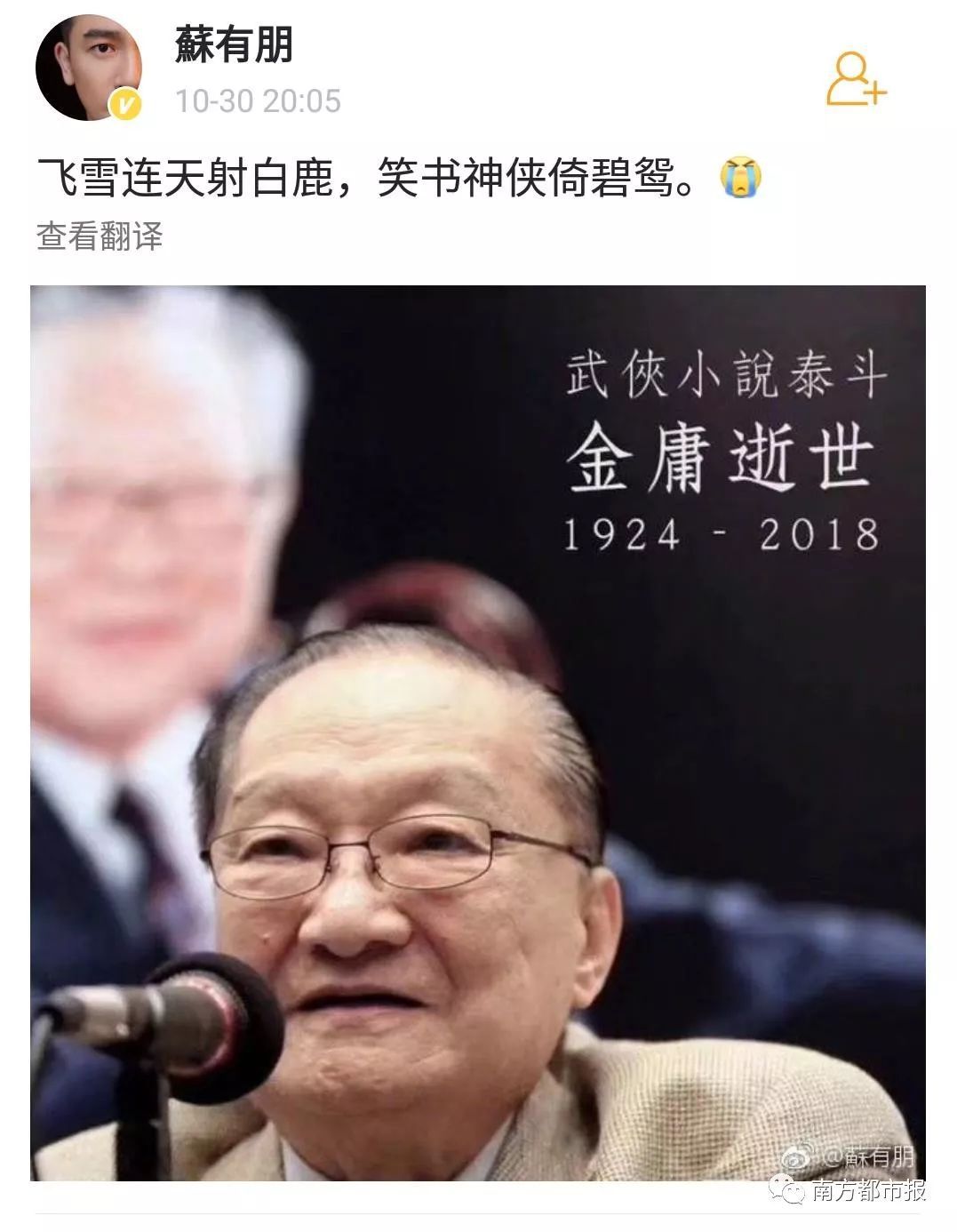 其中,陈小春(饰演过韦小宝)在微博写道“小宝就此别过,查大侠走好”……