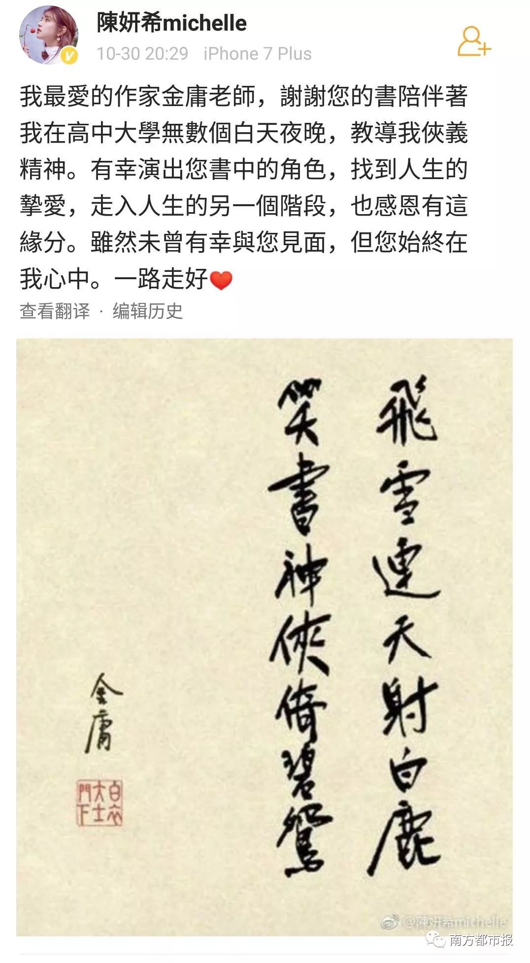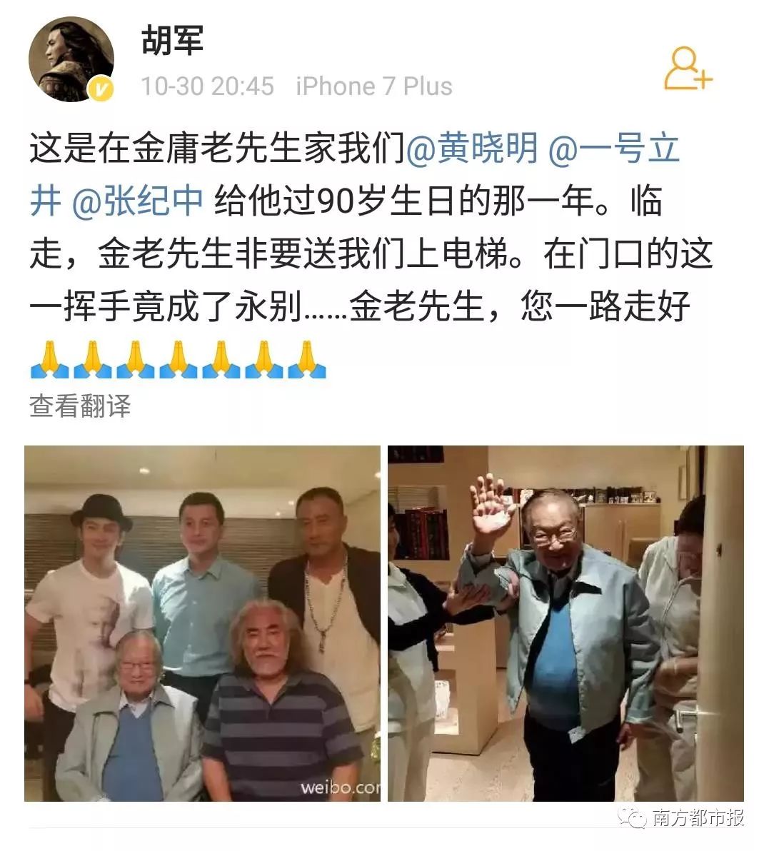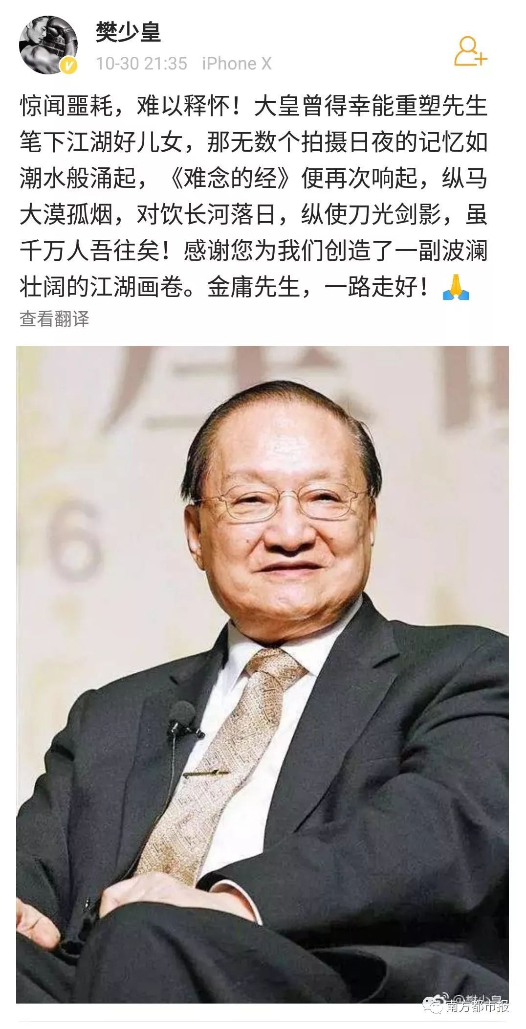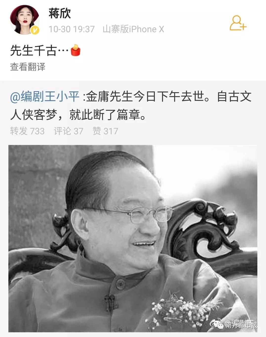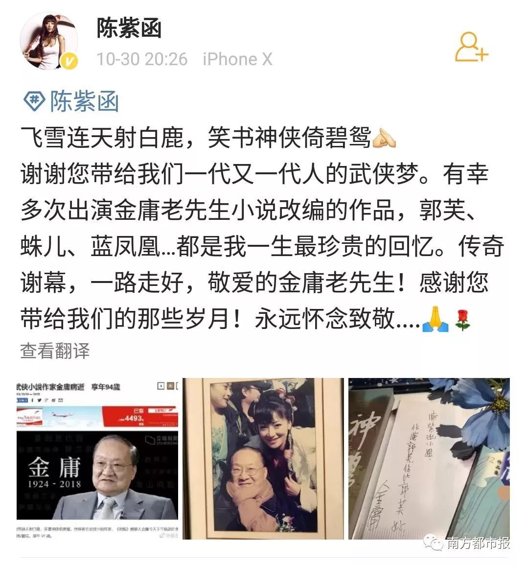 其中,陈小春(饰演过韦小宝)在微博写道“小宝就此别过,查大侠走好”……