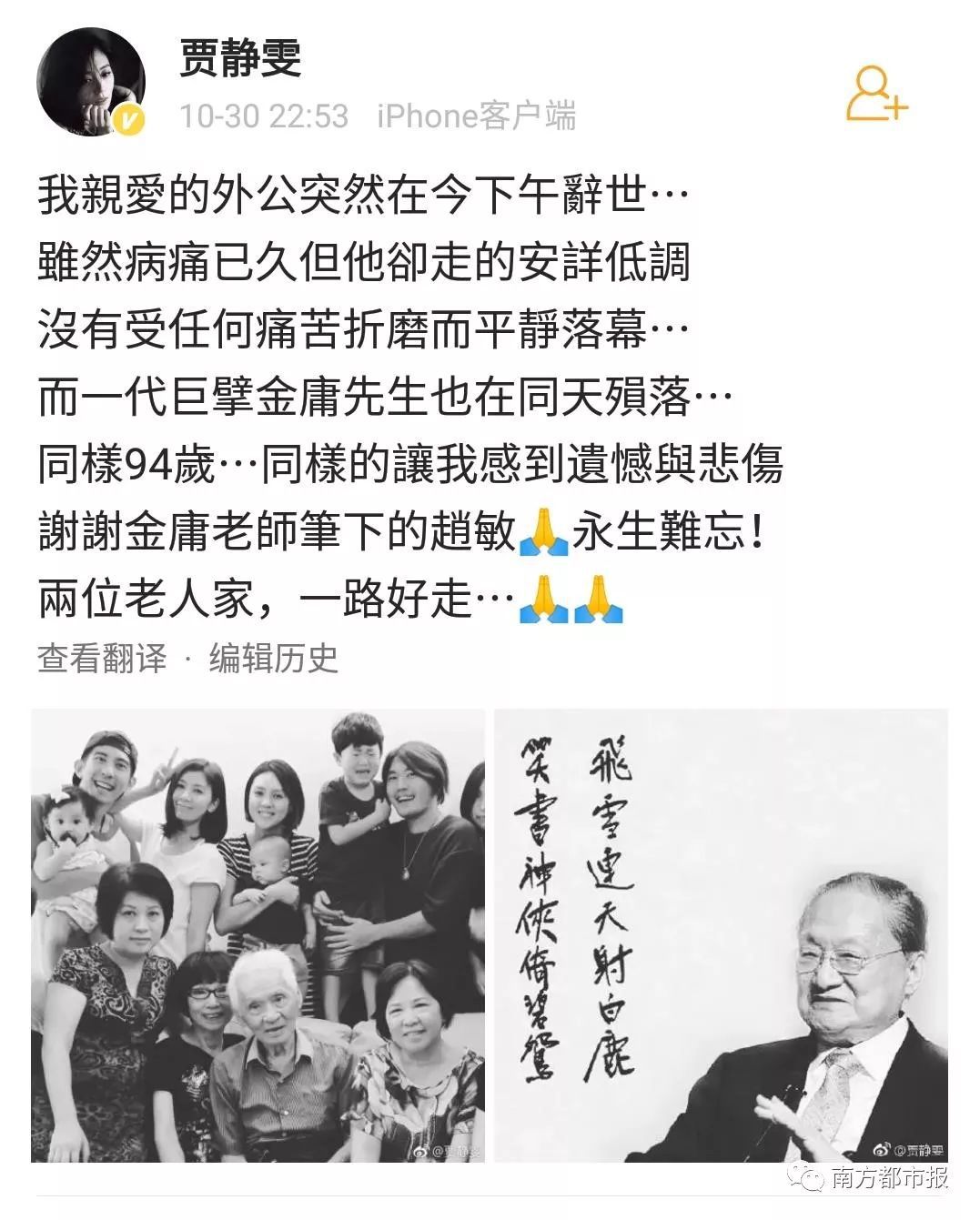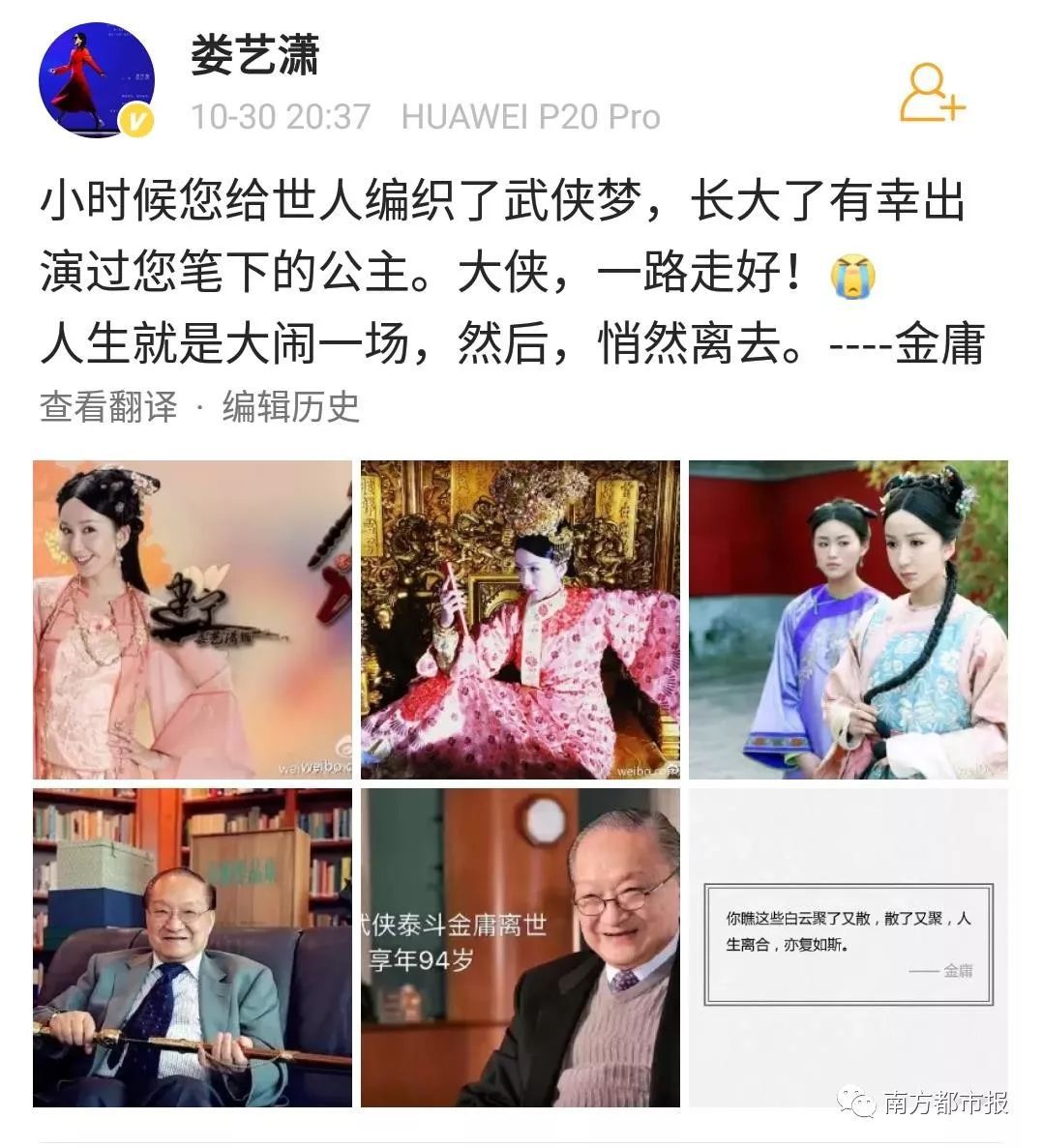 2018年10月30日,武侠小说泰斗金庸先生逝世,享年94岁。