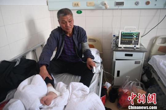 秦先生在逃离现场时脚部严重受伤,目前正在医院接受治疗。 张瑶 摄
