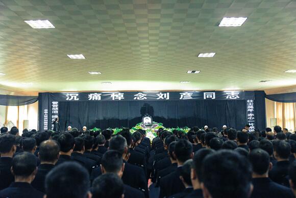 肃穆凝重,哀乐悲戚,人们泪水涟涟,鞠躬绕灵,瞻仰刘彦的遗容,送英雄最后一程。