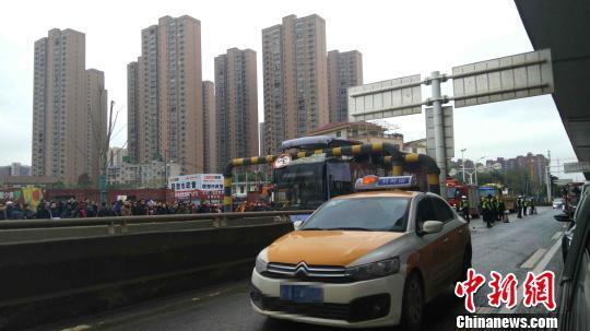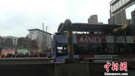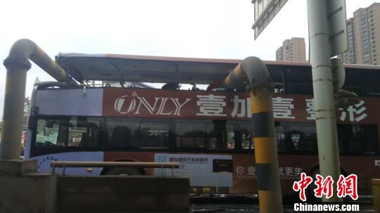 中新网客户端武汉12月27日电 (记者 张芹)27日14时许,武汉市洪山区白沙洲大道白沙三路口附近一辆双层593路公交车撞上3米限高架,车内1名乘客经抢救无效不幸去世,另有多名乘客受伤。