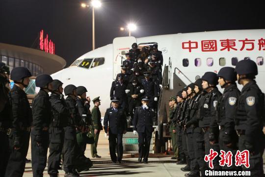 图为28名冒充公检法机关工作人员实施电信网络诈骗的犯罪嫌疑人被中国警方从孟加拉国押解回国。 警方供图