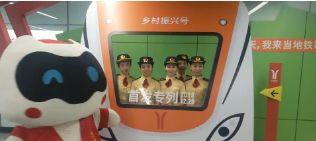 在“乡村振兴号”首发列车上,处处能见从化山川林泉,特色标志,不少人争相与车厢合影留念。
