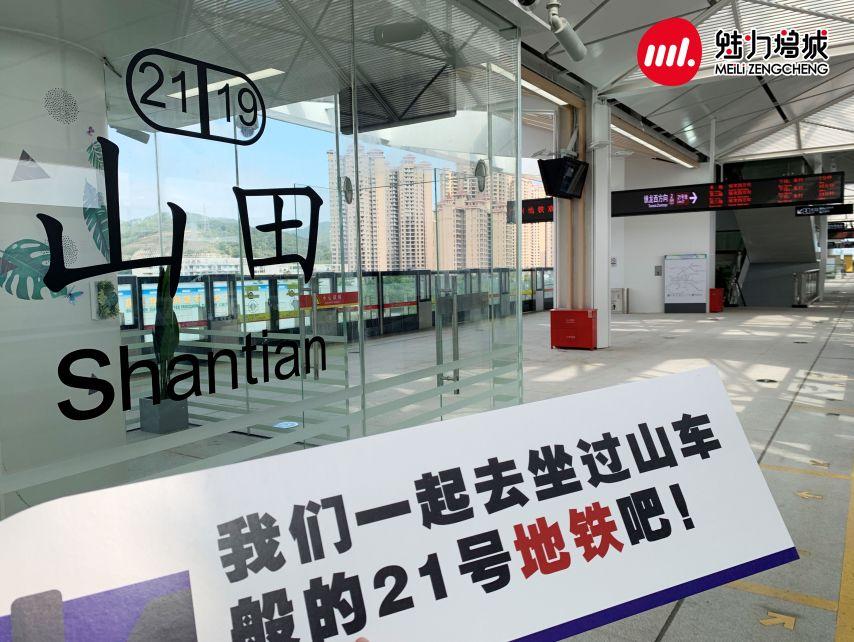 高架车站山田站则采用三层双岛式站台设计,以明黄为主打配色,车站周边西南侧为增城区旅游生态公园盈园 ,是观景风光最佳的车站。