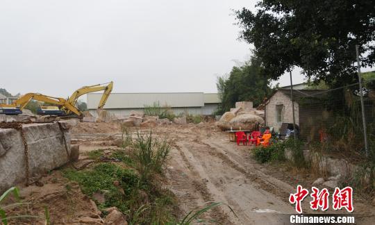 翁梅斋墓墓道通往墓丘处,堆放着当地石材企业的石料、作业车辆。 陈启任 摄