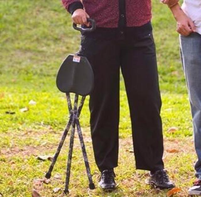 对于腿脚不甚灵便的老人来说,出门携带一根拐杖可以有效预防跌倒,如果是带有座椅功能的拐杖更好,可以供老人随时休息。