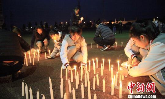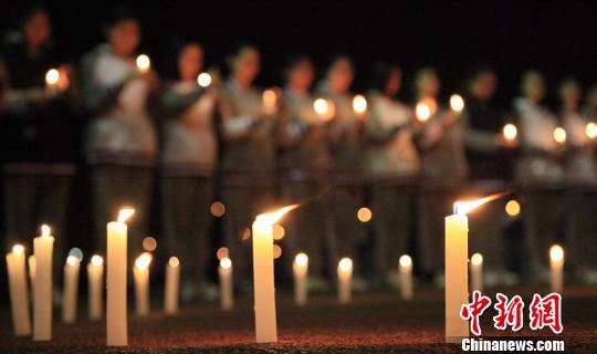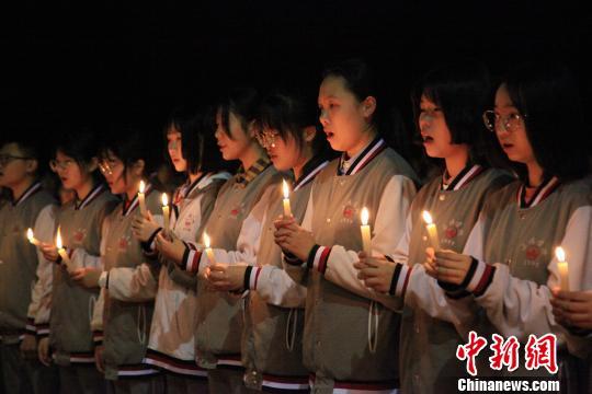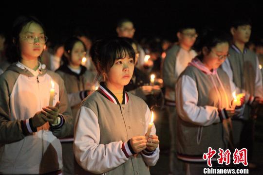 学生们点亮蜡烛寄哀思。 钟欣 摄