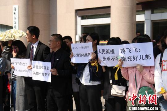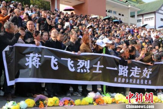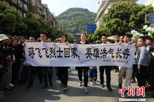 高坪区安汉广场,嘉陵江四桥,顺庆区滨江大道,玉带路,西山烈士陵园……送行的路上,早早等候的市民们,拉起横幅,告别飞飞。“蒋飞飞烈士一路走好”“感谢英雄用生命守护祖国山河”“英雄一路走好”……无数横幅,寄托着家乡人民对英雄的敬意。