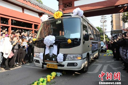 中新网成都4月5日电 (吴平华)扑救木里森林火灾牺牲的消防员蒋飞飞(骨灰)在家人的陪同下于5日回到了四川南充老家,当地约45万群众自发走上街头迎接英雄归来,并夹道为他送别。