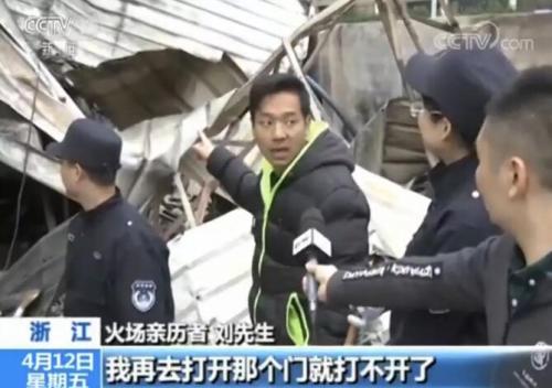 宁波市消防救援支队高级工程师 张小芹:“从这里来看迎火面是在这边,明火是从这边过去的,包括像这个墙面上靠着的木板,都是指向这边,起火部位大致圈定在现在站的这个地方,包括坍塌也是。”