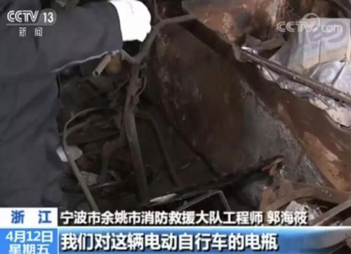 宁波市余姚市消防救援大队工程师 郭海筱:”我们对这辆电动自行车的电瓶进行勘验,发现这个电瓶里面是完好的,并没有发现爆裂痕迹。我们对电动自行车的一些电线进行了提取,通过肉眼观察没有发现短路的熔痕,初步可以排除是这个电瓶车引发火灾。“