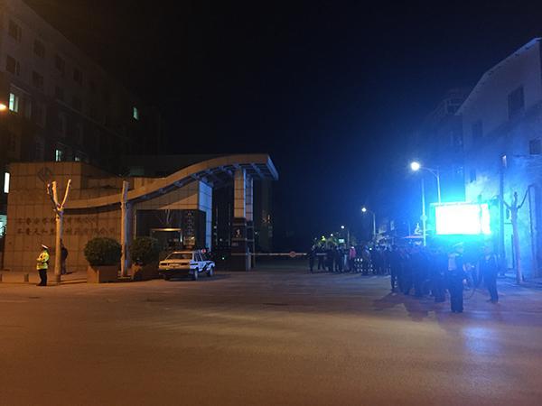 4月15日晚,齐鲁天和惠世制药有限公司门口聚集了不少人。澎湃新闻记者 张家然 摄