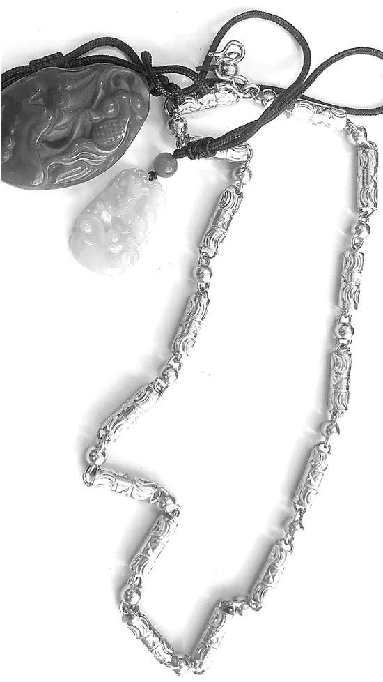 “金项链很粗,我拿起来掂了一下,很重,毛估估有两斤重,项链上还有两块玉佩。”车队长朱晨俊说。