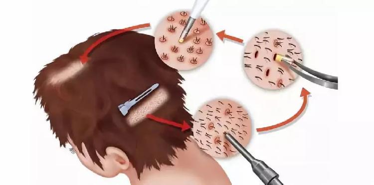 目前,国际上通行的植发技术有两种:一种是切1.5厘米宽的头皮条,再分离其上的毛囊单位,进行种植,英文简称FUT,俗称为“切头皮条”;另一种是用直径1毫米左右的空心钻,点状提取毛囊单位,英文简称FUE。