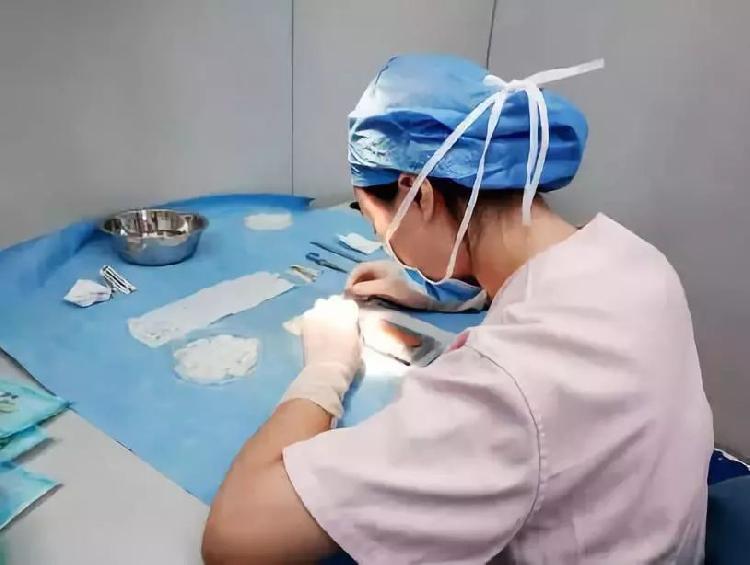 当天,给李妍做手术的是八大处医院毛发移植中心主任蒋文杰,从2009年起,他便开始操刀这一领域。做完术前验血检查与设计好发型方案后,蒋文杰在李妍后枕部用马克笔画好了长7厘米、宽1厘米左右的供应区域。在经过局部麻醉后,蒋文杰用手术刀从患者后枕部切下宽度1厘米左右的头皮条,其中关键在于将毛囊完整取下,不要损伤。接下来,护士将头皮条切成若干小方块,再对每个小方块的脂肪进行分离,将其切分成一个个毛囊单位,放到浸泡在培养皿盐水中的方形纱布上,培养皿下方还放有冰盒。整个分离全程保持湿润,以保证毛囊的成活率。