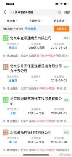 随后,群内警觉的业主们通过各种途径查询了自己的商住地址是否有被用于注册公司的情况,结果发现,有大量业主的住址,被注册了各种各样的公司。