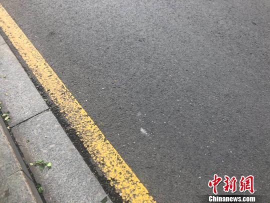 图为马路上散落的玻璃渣。 李庭耀 摄
