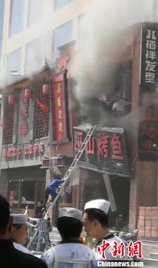 爆炸后拍摄的一段视频显示,事发饭店二楼有大量烟雾冒出,被困人员通过梯子向下爬,多辆消防车辆停在路边,消防指战员携带装备进入该饭店。