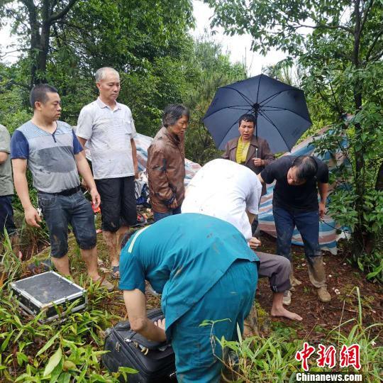 救援队伍到达龙水镇长井村委八亩田村现场施救受伤人员 马德友 摄