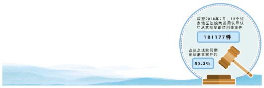 此后,关于认罪认罚从宽制度的推进工作马不停蹄。截至2018年7月,18个试点地区法院共适用认罪认罚从宽制度审结刑事案件181177件,占试点法院同期审结刑事案件的52.3%。