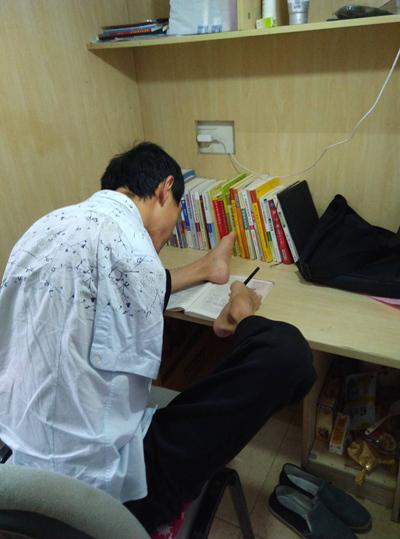 高三时,即使在周末和寒暑假,他每天也至少学习3~4个小时。生物是他最薄弱的科目,他就买了5本生物复习资料反复练习。