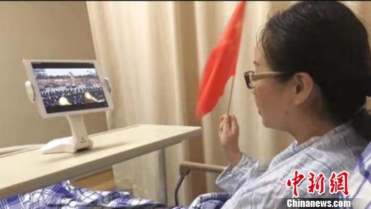 国庆当日唐玉观看直播。陈杰供图