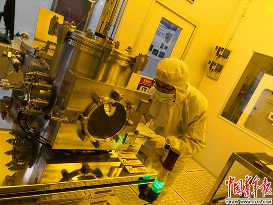 中国科大研究生赵军一正使用原子层沉积设备对样品进行表面处理。中国青年报·中国青年网记者 王海涵/摄