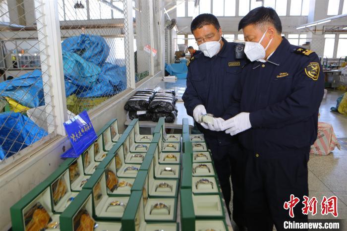 图为现场查验关员进行查验。 王欣祥 摄