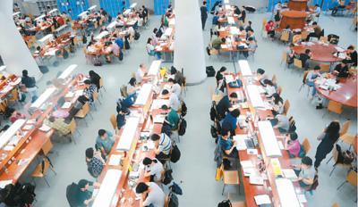 在重庆图书馆自修室,市民正在看书学习。赵杰昌摄(人民图片)
