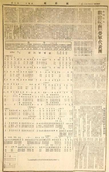 △一九三九年十月十一日《抗敌报》刊登的颁布学唱《新四军军歌》的命令及歌谱。