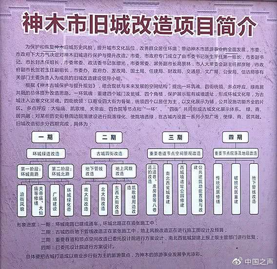 据中国之声报道:近日,社交媒体上“陕西神木市拆老街建仿古建筑”的话题引起热议,起源于名为“刘拓PKU”的旅游博主,他发文称,“在公众号上看到了神木老城即将改造的消息,从效果图来看,所有的沿街铺面房都将被拆除重建,如果这是真的,那简直是不可理喻的事情。”随后,相关微博被广泛转发评论。