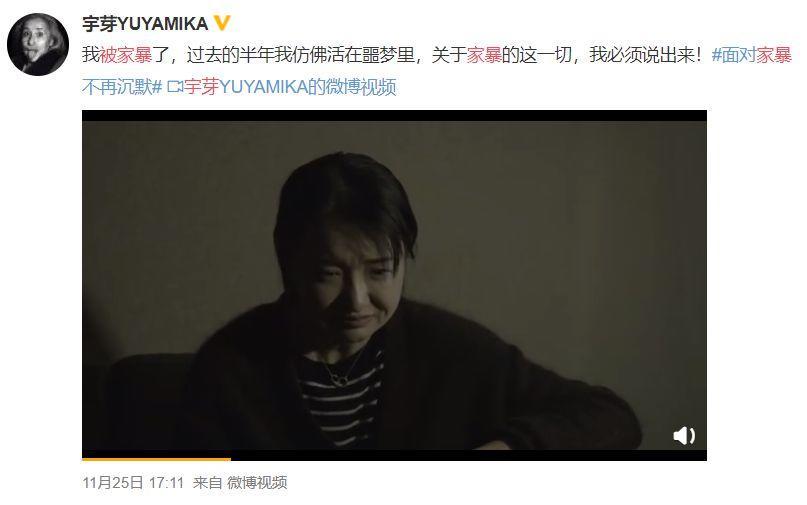 11月25日,微博主“宇芽YUYAMIKA”(何某,女,28岁)发布微博称自己被前男友网民“沱沱的风魔教”(陈某,男,44岁)家暴。11月27日,博主宇芽前男友,被重庆江北区公安机关行政拘留二十日。