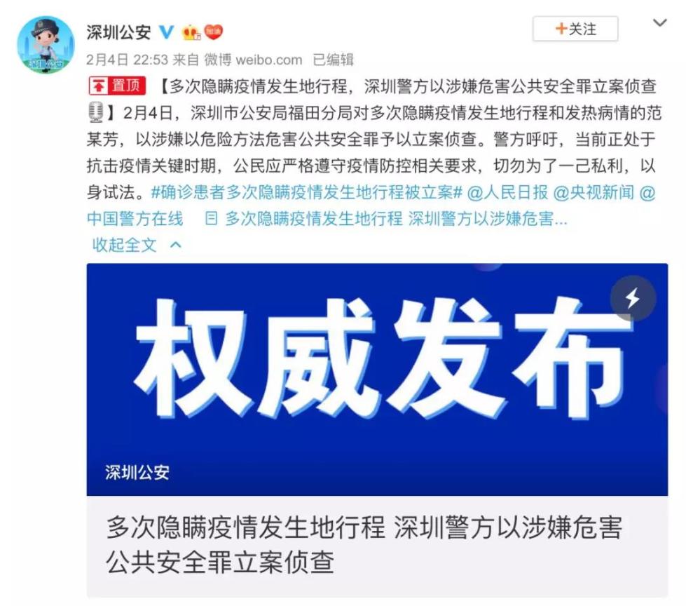 今天是2月5日,《新闻联播》继续关注新型冠状病毒感染的肺炎疫情。近一段时间,多地发生了一些病患隐瞒真实行程的案例,他们去过湖北或者武汉,但离开了之后不如实报告、不主动隔离,结果导致多人被感染。对此,警方已经对多人立案侦查。主播欧阳夏丹说,对于这些人的恶劣行为,法律要重拳出击。